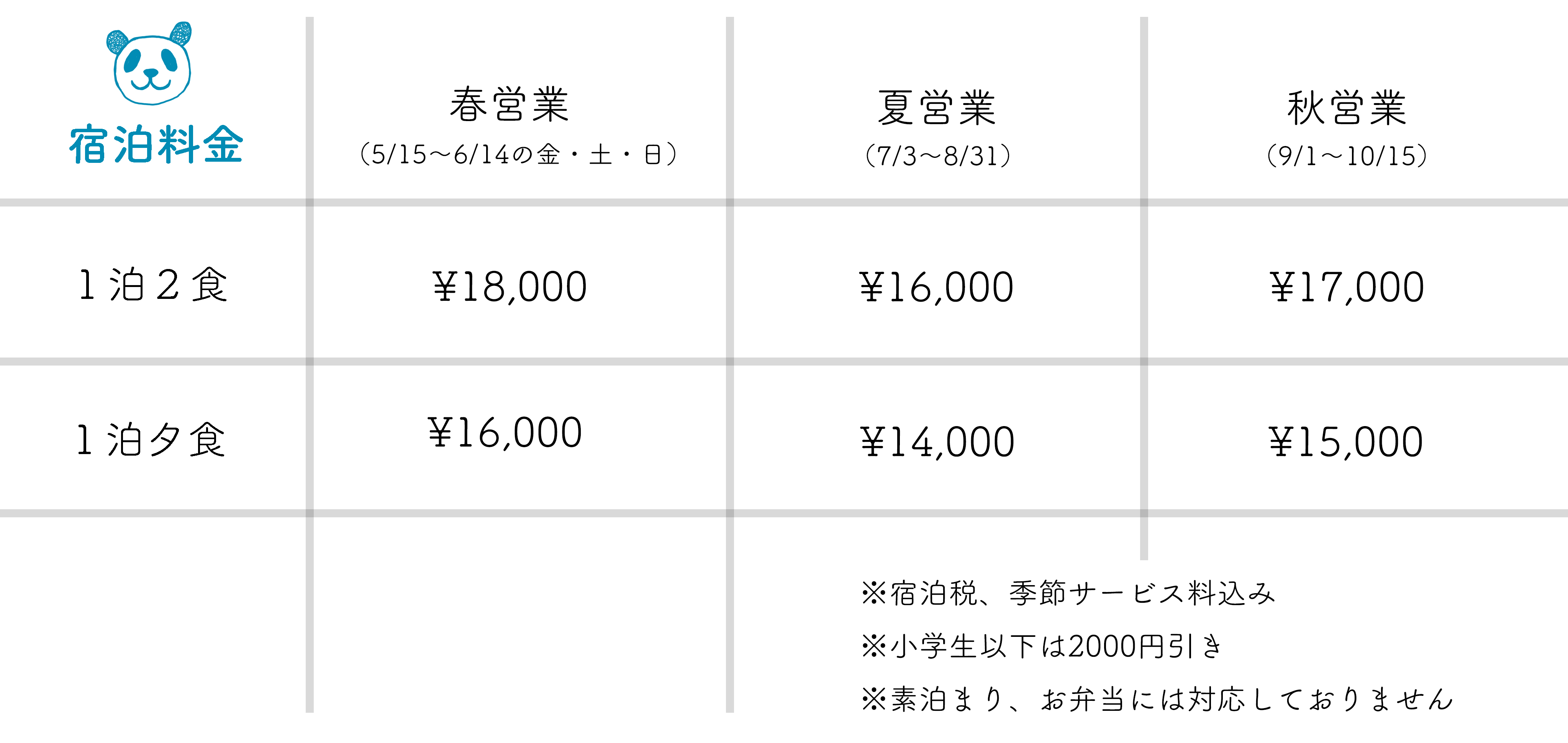 ・シーズンを通して素泊まり、お弁当の注文は承っておりません。
